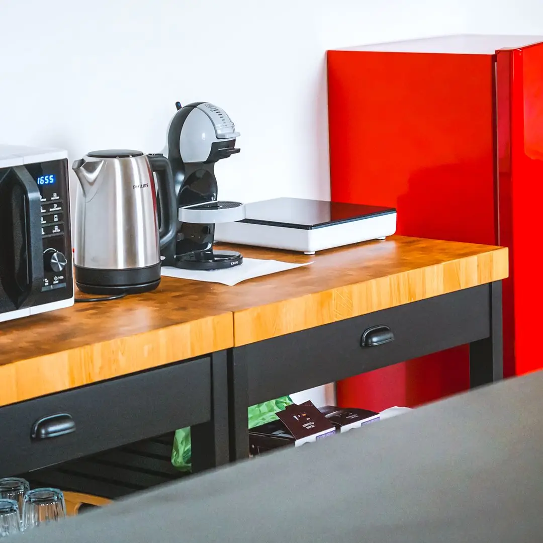 Our refreshment area is the perfect spot for a relaxing break or an informal networking session. Enjoy coffee, a variety of teas, and healthy snacks while recharging your energy to tackle your workday.