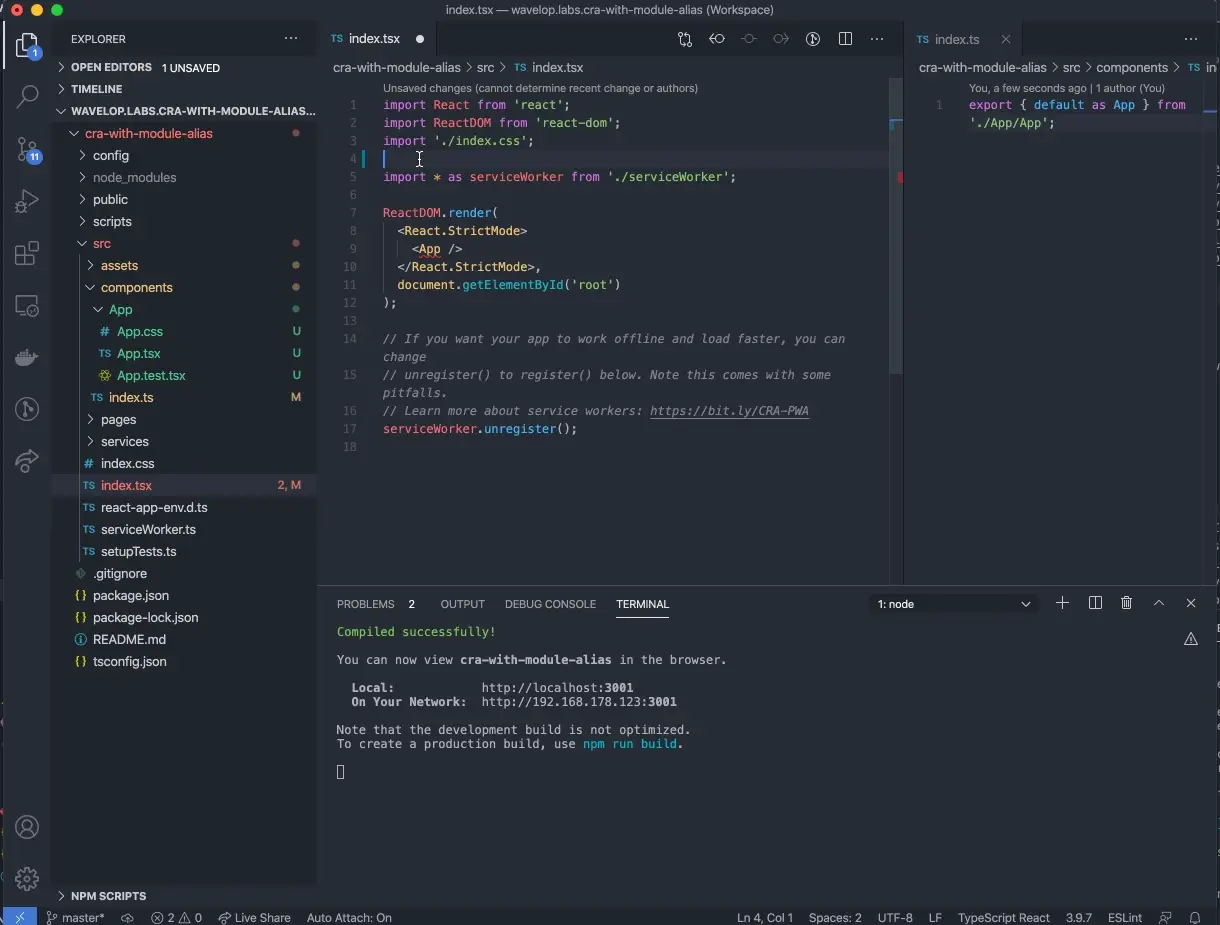 Create React App: import modules using aliases with Webpack and Typescript